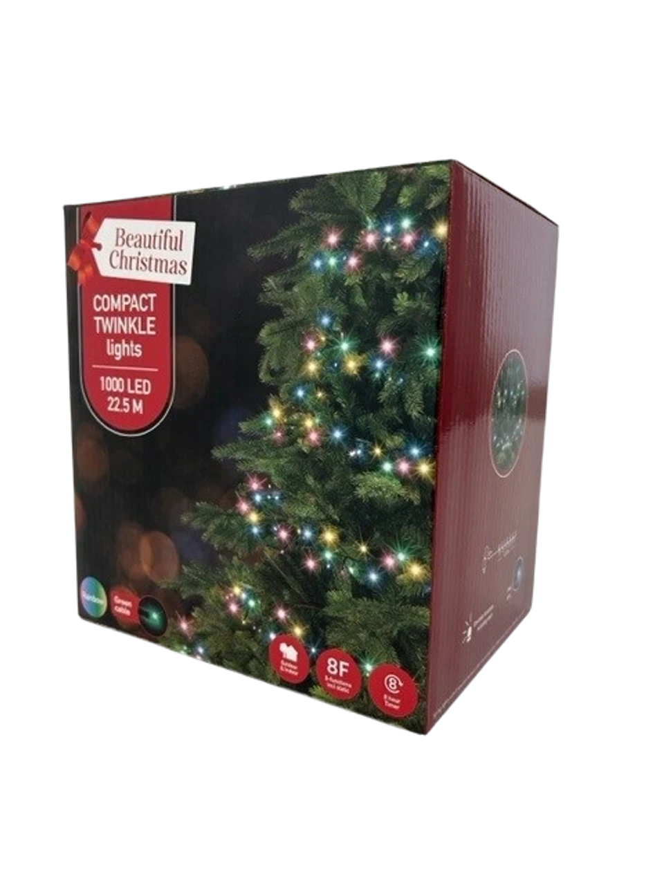 Bring a burst of colour to your space with the Compact Lights featuring a vibrant rainbow on a green cable. With 1000 LED lights, these lights create a stunning and lively atmosphere, making them perfect for festive celebrations and year-round enjoyment.