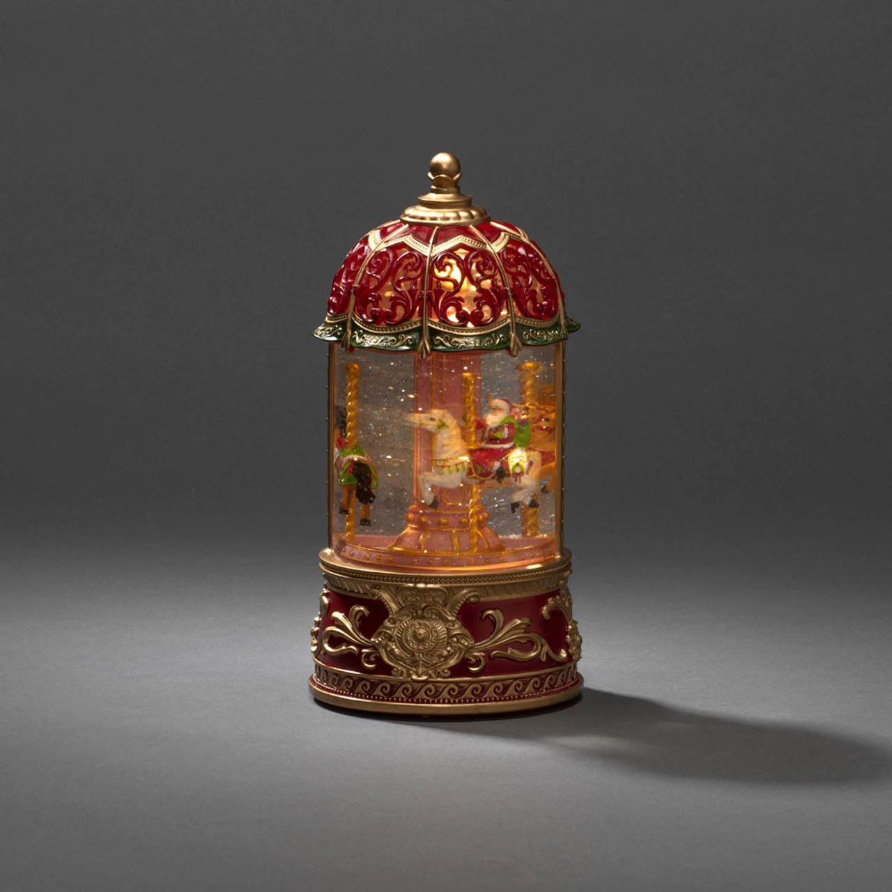Enhance your holiday decor with our Christmas Lantern featuring a carousel. This lantern is equipped with LED lights that gently illuminate the holiday scene within, casting a warm and inviting glow. When shaken gently, the water inside the ornament stirs, creating a mesmerizing snowfall effect. It’s a cherished part of British holiday traditions, invoking the spirit of Christmas and creating treasured memories year after year.